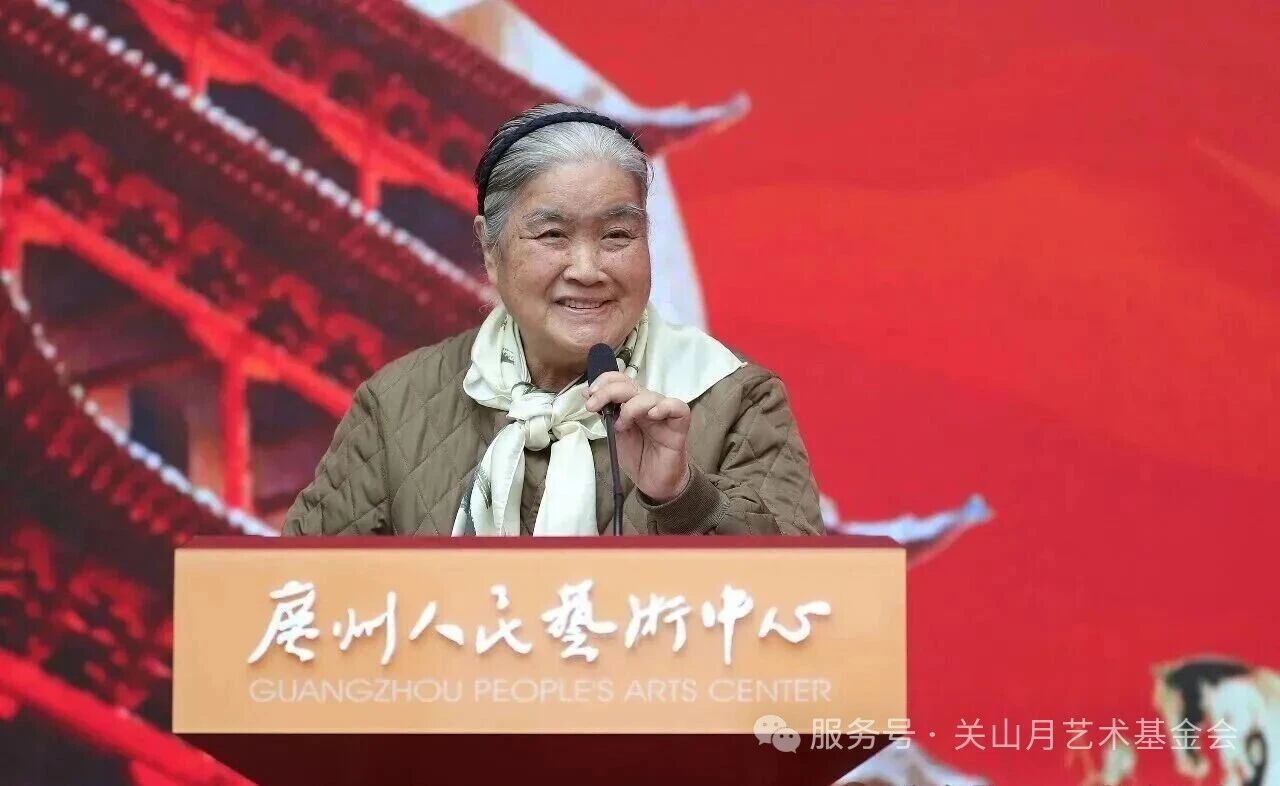关怡在代表本会致辞中,分享了父亲关山月1943年西行敦煌的难忘历程。当年,关山月婉辞安稳教职,携夫人李秋璜、赵望云、张振铎历经20天风沙跋涉抵达莫高窟。在昏暗洞窟中,夫人秉灯相助,他每日以冷水、烧饼为伴,潜心临摹近百幅壁画,拒绝高价出售后将作品全部捐赠国家,用一生践行“古为今用”的艺术初心。“敦煌是父亲一生受用不尽的艺术财富,这份财富如今正滋养着新一代岭南画家,我们传承的不仅是笔墨技法,更是坚定深沉的文化自信。”关怡的深情讲述让现场观众动容不已。